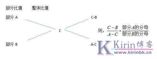 3、公式:AB=c−ba−c 【a,b为部分增长率,c为整体增长率,A,B为基期】