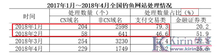 C.2018年2月全国支付交易类钓鱼网站处理数量环比下降了不到50%