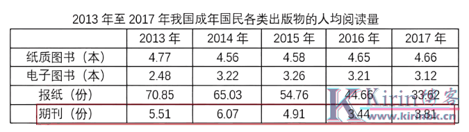D.2014年至2017年我国成年国民人均期刊阅读量,增长率最高的年份为2017年