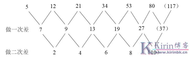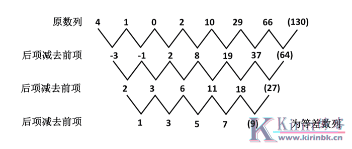 2、第二步:对一级数列进行观察,如果数列变化无规律(注意一级数列可能是递推数列),可以再进行第一步的操作,得到二级数列。