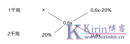 例4:(2016北京)将1千克浓度为X的酒精,与2千克浓度为20%的酒精混合后,浓度变为0.6X。则X的值为?
