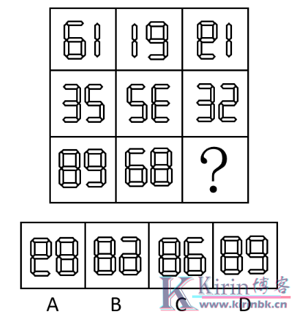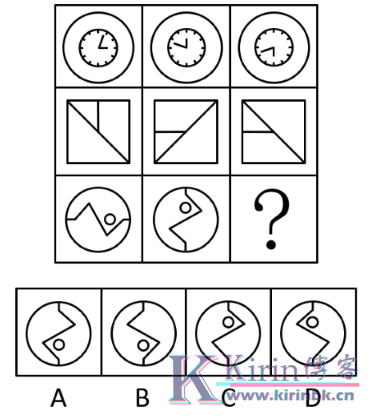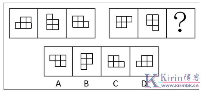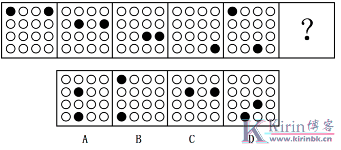 例2:(2020年湖南)从所给四个选项中,选择最合适的一项填入问号处,使之呈现一定的规律性。