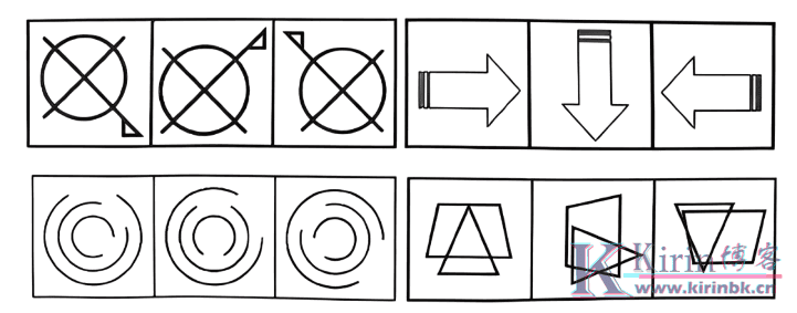 ※解析:本题为九宫格题。元素组成相同,优先考虑位置规律。九宫格优先看横行,第一行图1旋转得到图2,图2左右翻转得到图3,第二行验证符合此规律。第三行应用此规律,图1旋转得到图2,故?处图形由图2左右翻转得到,只有B项符合。